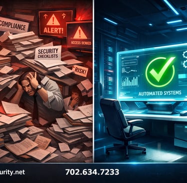 Think about what traditional CMMC compliance looks like: over 900 hardening steps, continuous monitoring requirements, threat detection, response protocols, and documentation for every single control. Most small to medium defense contractors simply don't have the personnel or expertise to manage this manually.